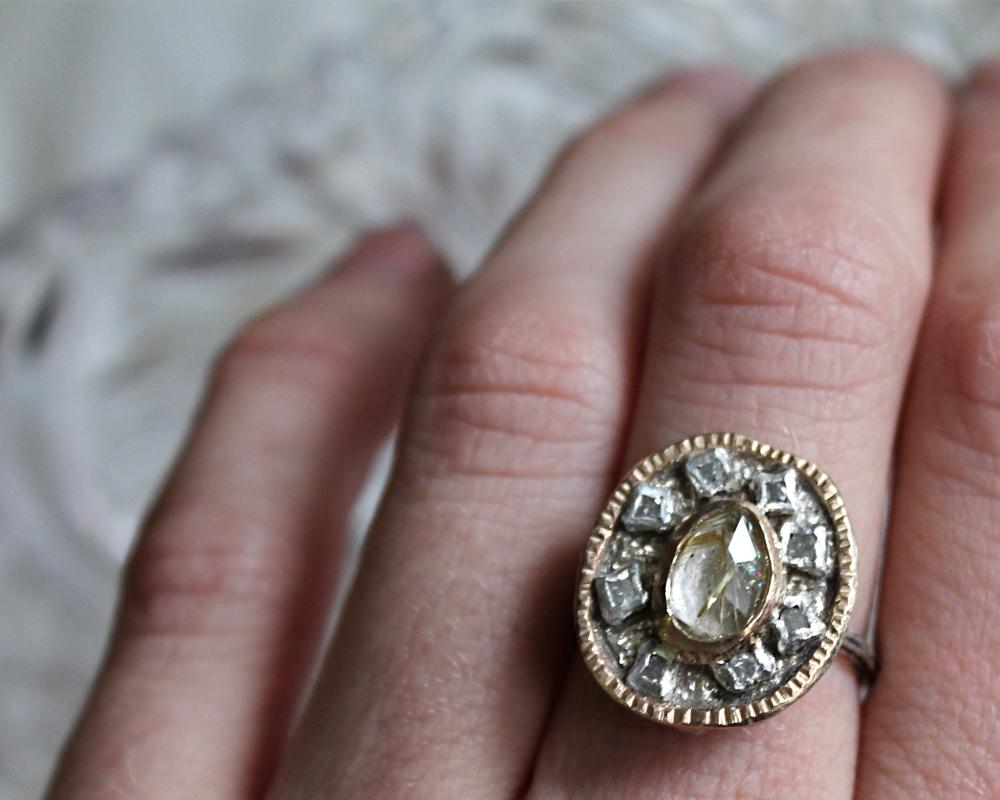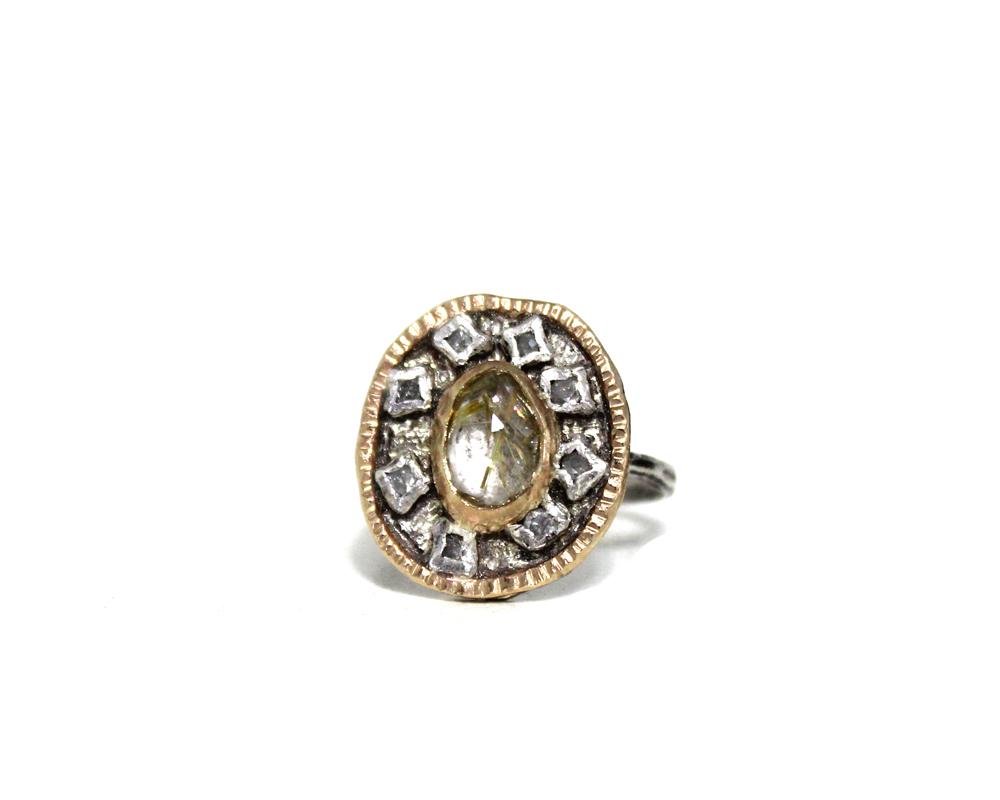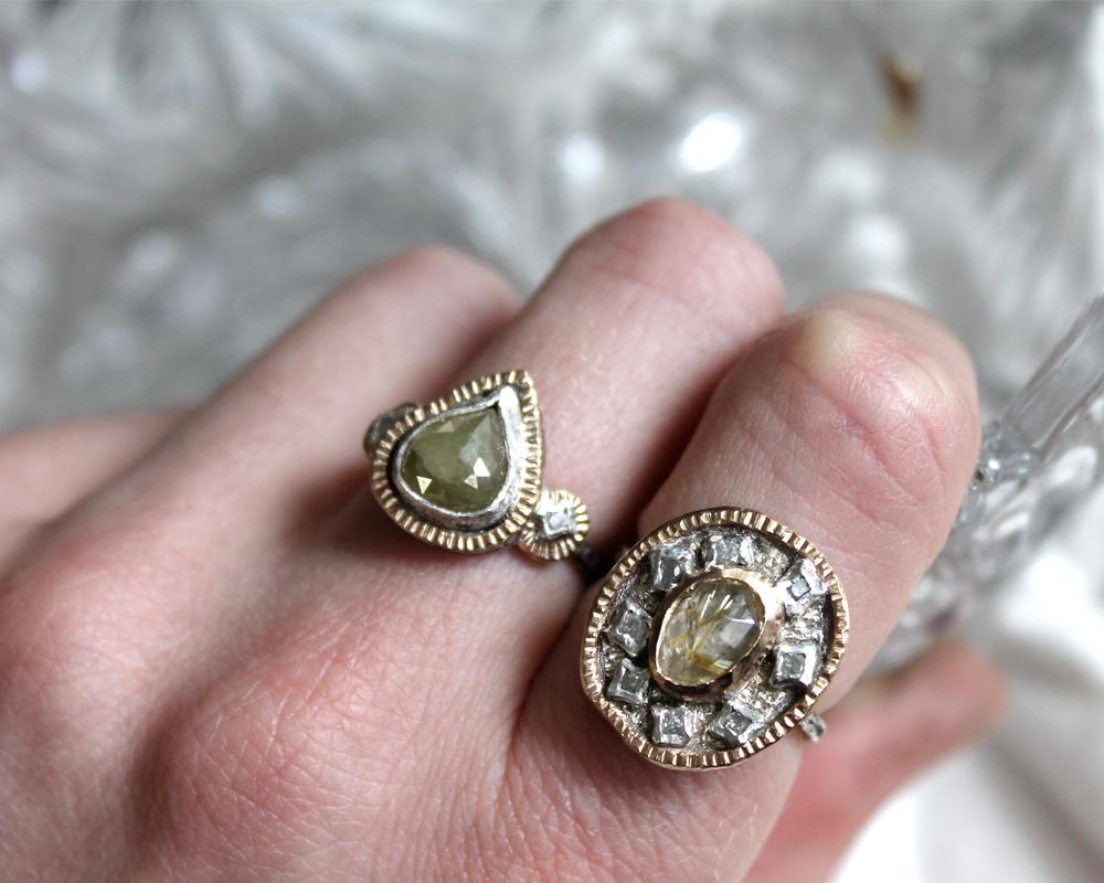- Sterling Silver & 14k Yellow Gold with Rutilated Quartz & Diamonds